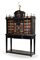 Monetiere in legno ebanizzato con inserti in tartaruga, fronte a struttura arch