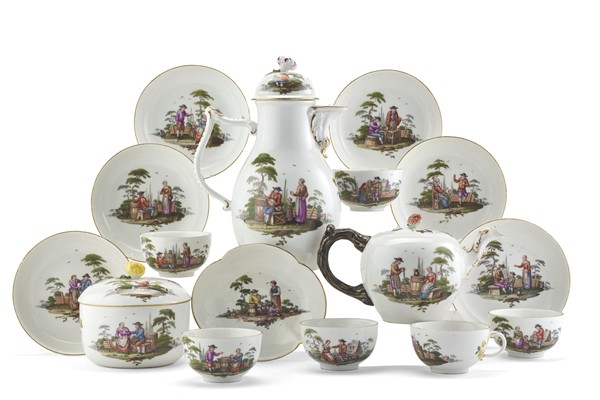 Manifattura di Meissen, secolo XVIII. Servizio in porcellana composto da caffet
