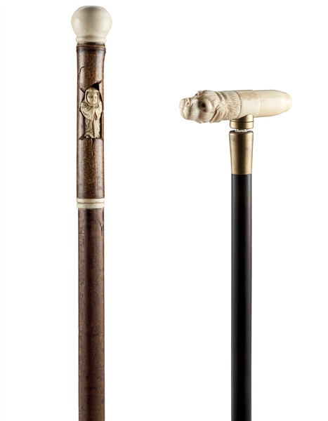 Arte del secolo XIX. Lotto per bevitori composto da due bastoni animati con cav