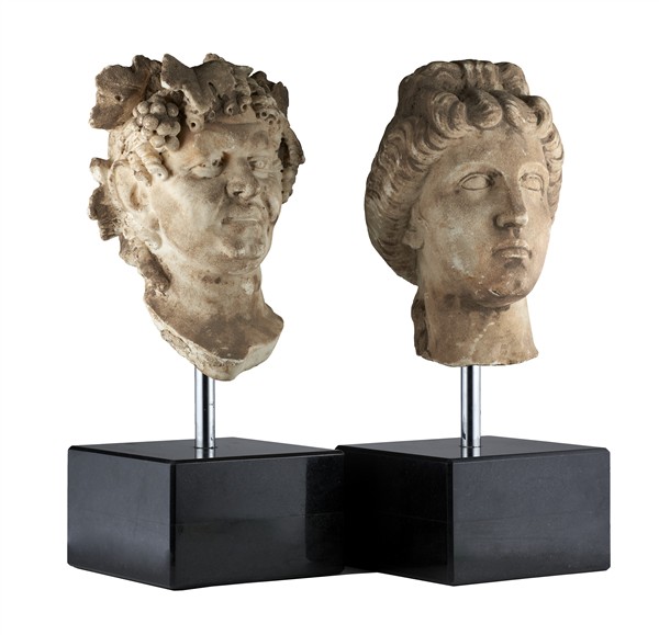 Lot 425 | Due antiche teste in marmo scolpito dall'antico raffiguranti rispettivamente Ba