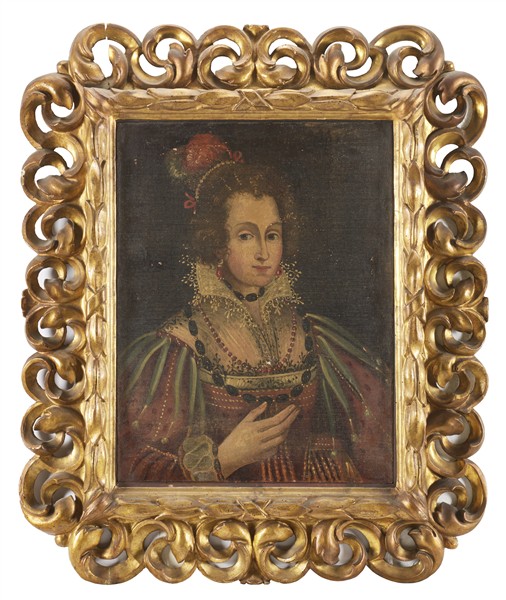 Ignoto "Ritratto di nobildonna con orecchini e collana in corallo" olio su tel