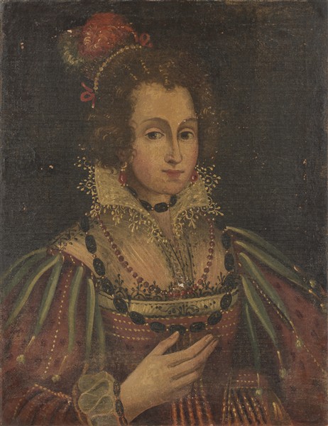 "Portrait of a noblewoman with coral earrings and necklace"