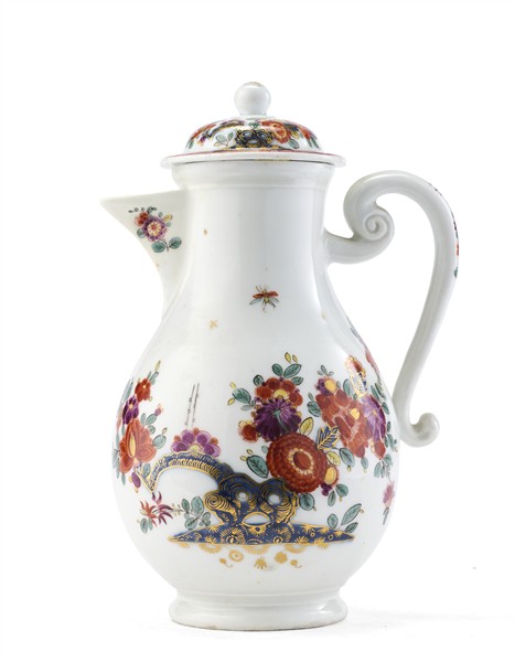 Manifattura di Meissen, 1730-1735. Caffettiera piriforme in porcellana policrom
