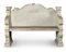 Panca in marmo bianco in stile pompeiano con schienale sagomato scolpito a bass