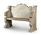 White marble bench in pompeian style with shaped back carved in bas-relief with scene of bacchanal (cm 167x120x96) (defects)