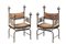 Coppia di antichi faldistori in ferro battuto con pinnacoli in bronzo decorati