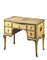 Scrivania da centro in legno laccato con piano sagomato, fronte a cinque casset