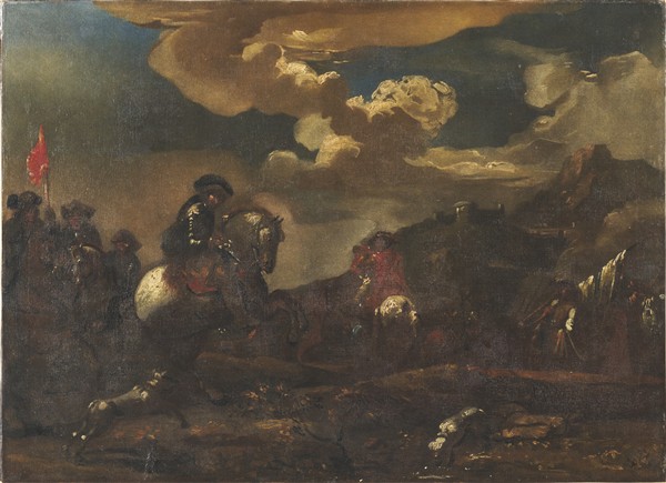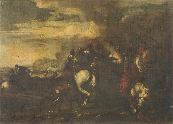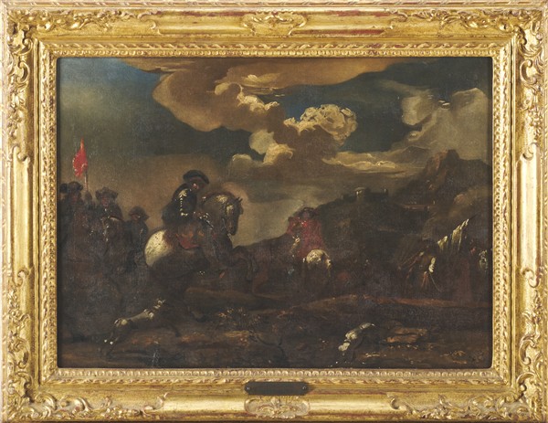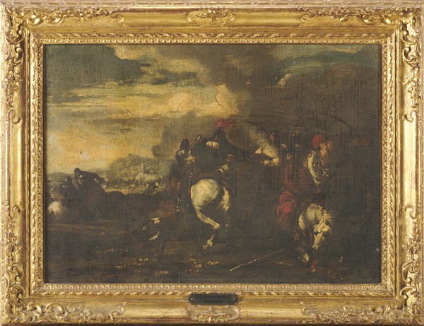 Seguace di Francesco Simonini del secolo XVIII "Scene di battaglia" coppia di