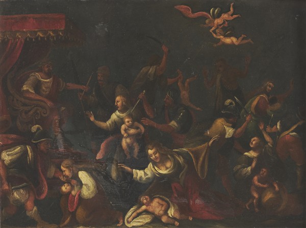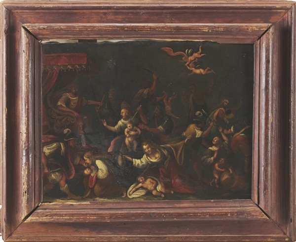 Scuola veronese del secolo XVII "Strage degli innocenti" olio su ardesia (cm 2
