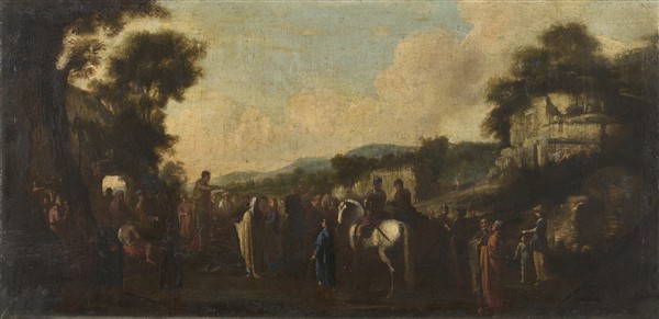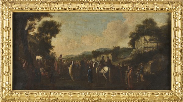 Scuola napoletana del secolo XVII "La predica del Battista" olio su tela (cm 4