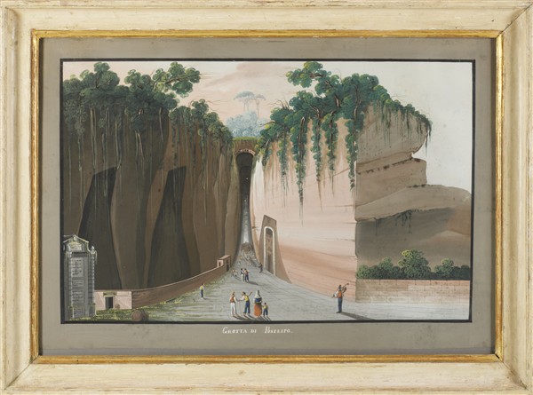 19th-century Neapolitan school. Group of four gouaches with views of Naples depicting ‘Napoli da Posillipo’, ‘Villa Reale’, ‘Grotta di Posillipo’ and ‘Napoli dal Campo’. In painted and gilded wooden frames (60.5x82 cm) (defects)