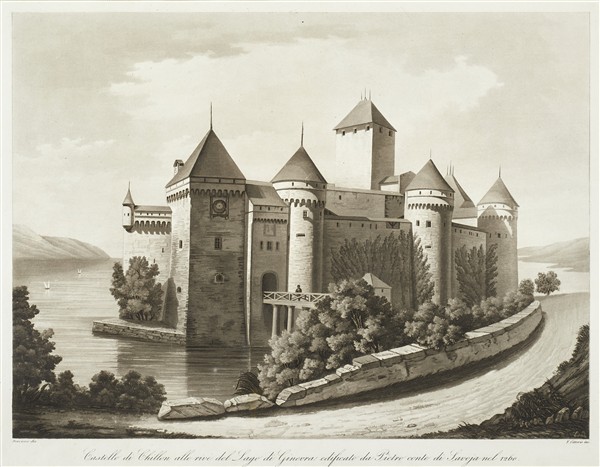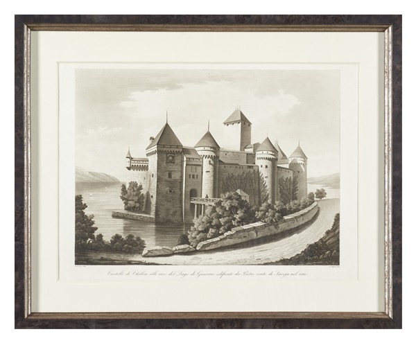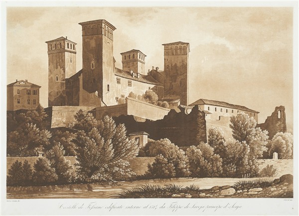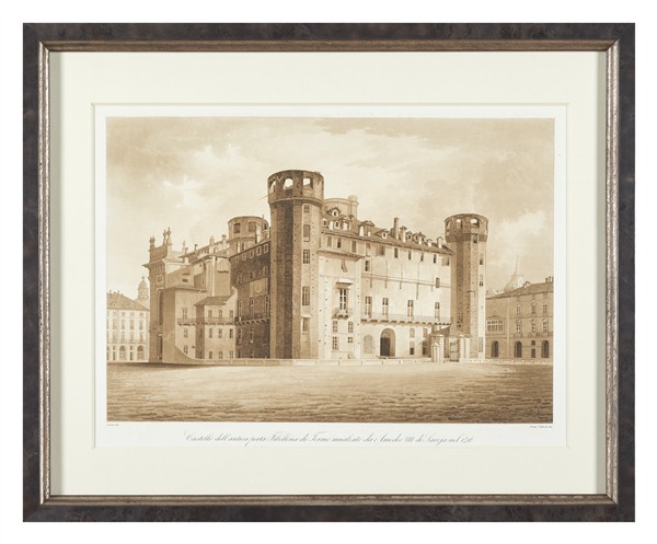 Various authors of the 19th century. Piedmontese castles, group of four aquatints, in frames