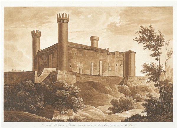 Autori vari del secolo XIX. Castelli piemontesi, gruppo di quattro acquetinte,
