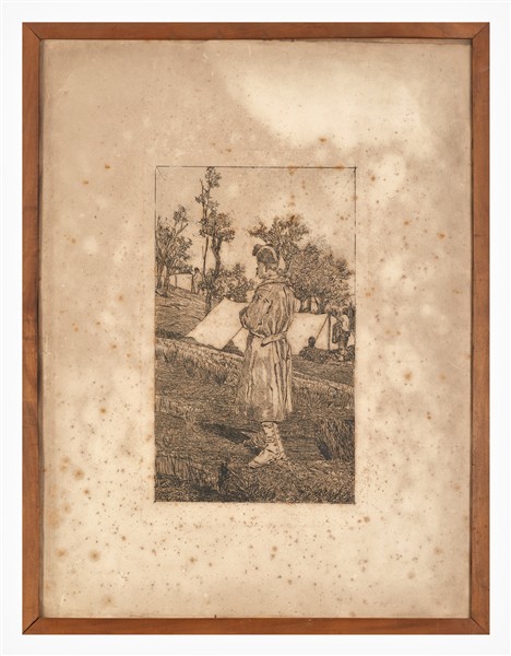 Giovanni Fattori "Il sergente" acquaforte (all'impronta mm 320x193) in cornice (