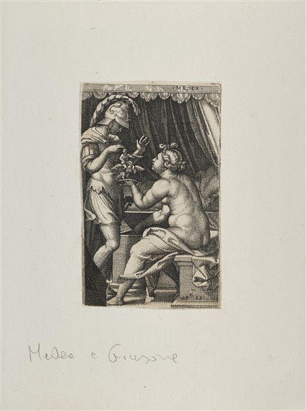 Lotto composto da un bulino di Hans Sebald Beham raffigurante "Rissa di contadini", un bulino di Barthel Beham raffigurante "Cimone e Pero" e due bulini di Georg Pencz, uno raffigurante "Conversione di san Paolo" e l'altro raffigurante "Medea e Giasone" (gravi difetti), di misure differenti