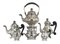 Servizio da tè e caffè in argento sbalzato con corpo costolato e prese rocaille