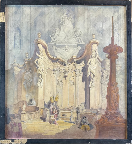 Alfred-Charles Conrade "Cattedrale di Mainz" tecnica mista su carta (cm 52x48)