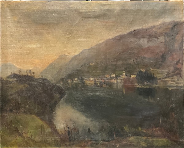 Donato Frisia "Isola Comacina" 1948 olio su tela (cm 80x100) Firmato e datato in