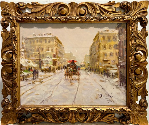 Giuseppe Solenghi "Milano innevata" olio su tela (cm 50x65) Firmato in basso a