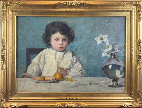 Cesare Bertolotti "La merenda" olio su tela (cm 50x70) Firmato e datato in bass