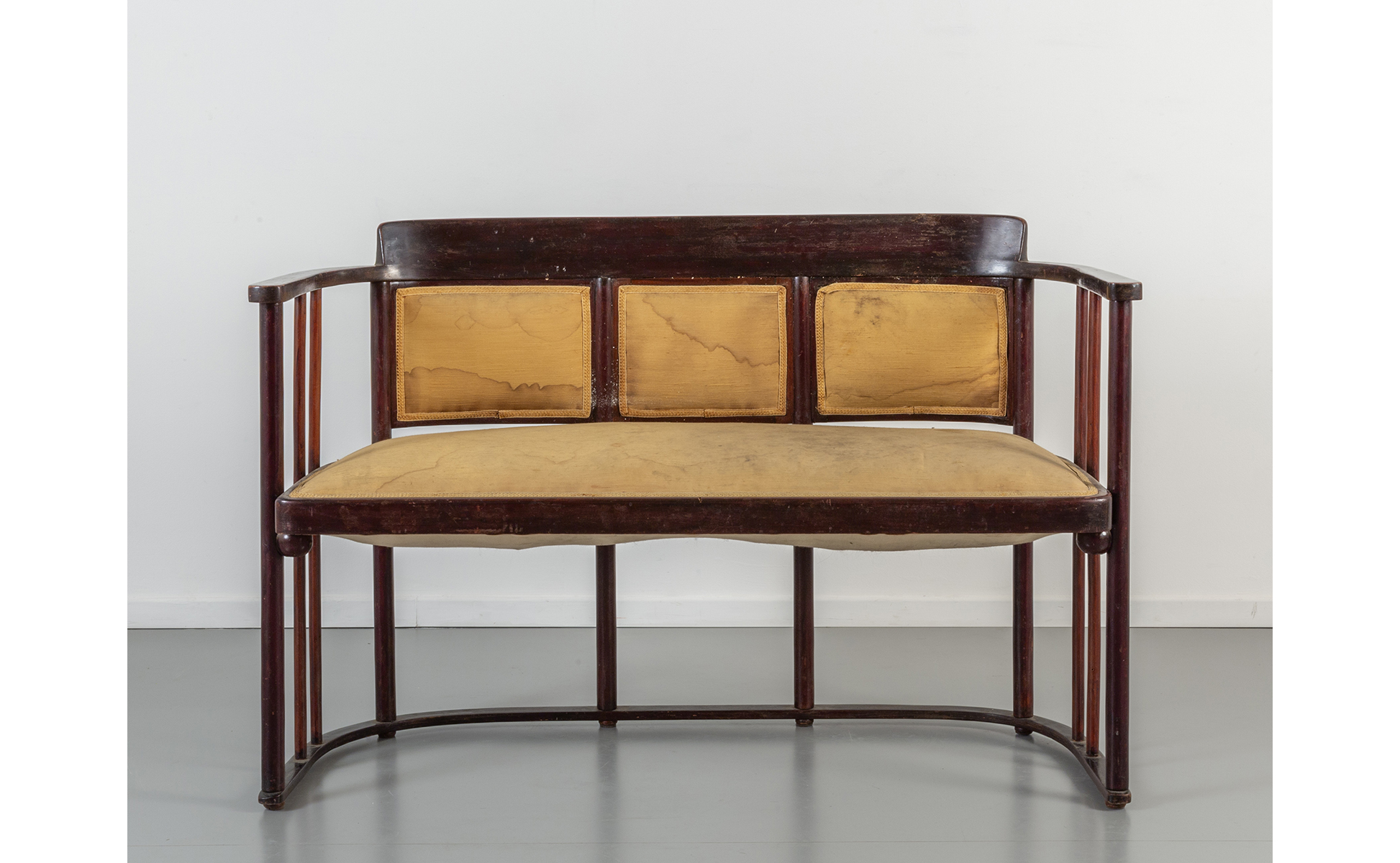 Legno tinto all'anilina imbottiture rivestite in tessuto (segni di usura).