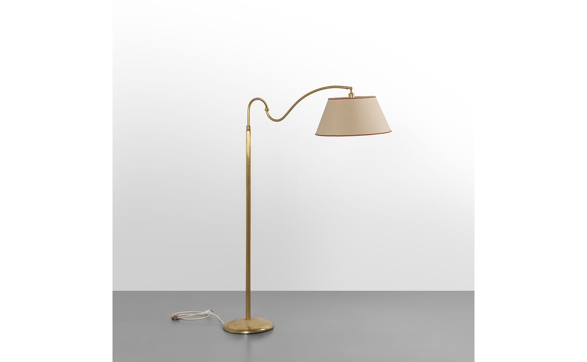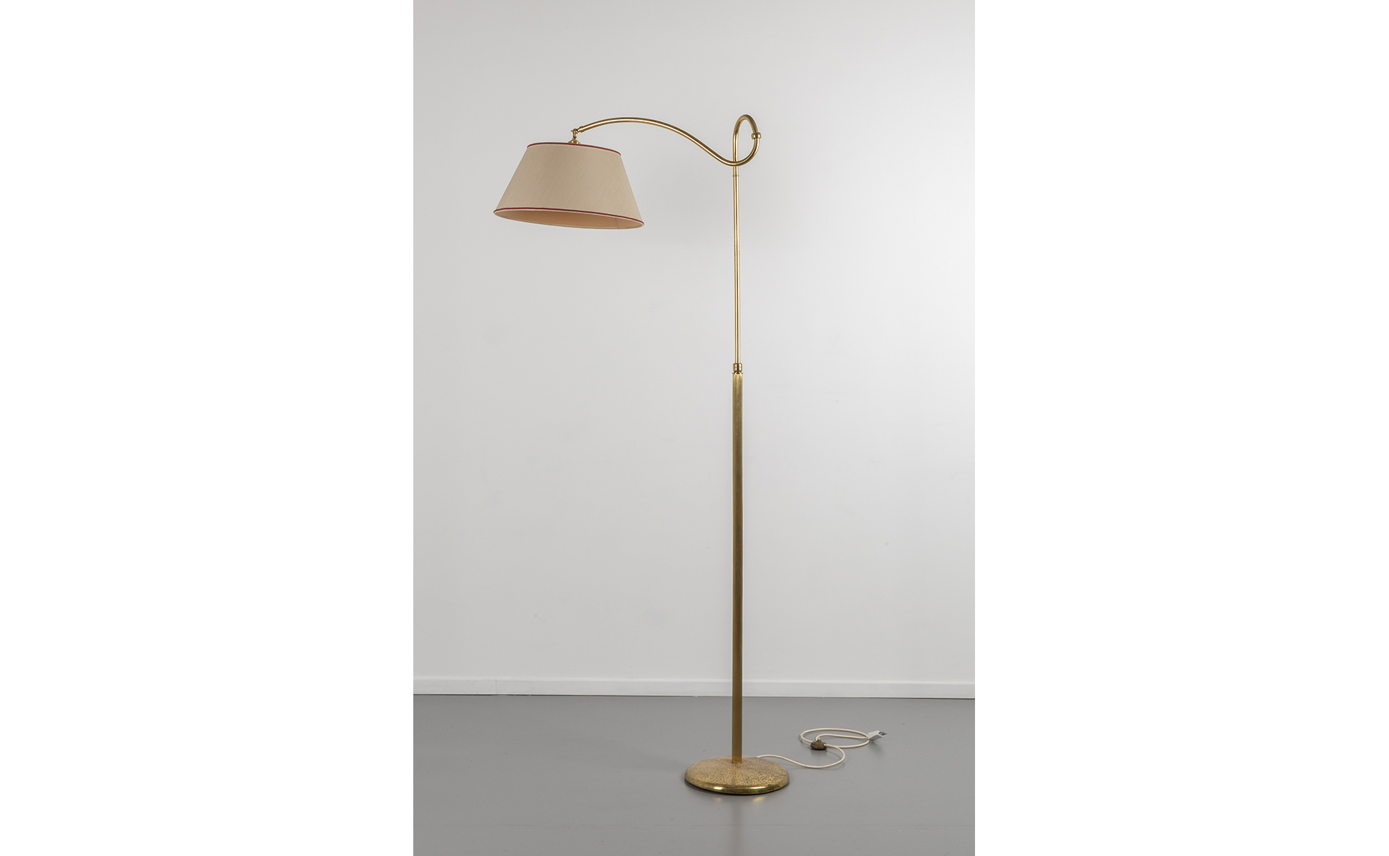Stelo telescopico e braccio estensibile in ottone paralume in tela plastificata.
