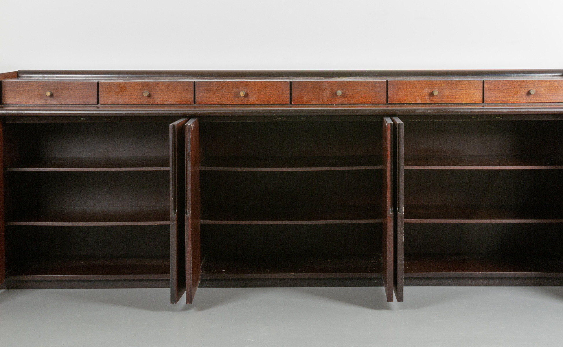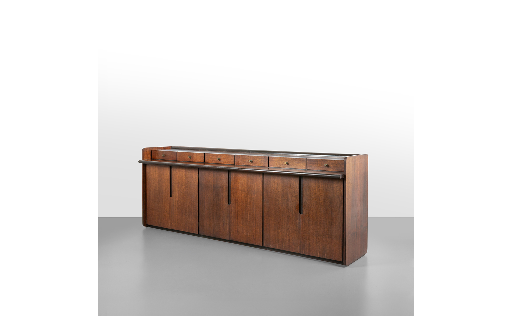 Legno impiallacciato in palissandro pomelli in ottone brunito.