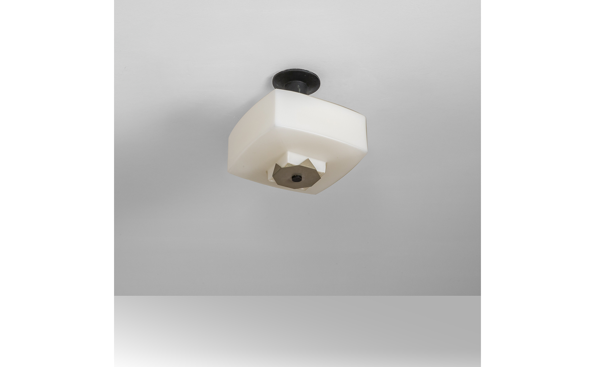 Alluminio laccato ottone nichelato vetro duplex opal bianco.