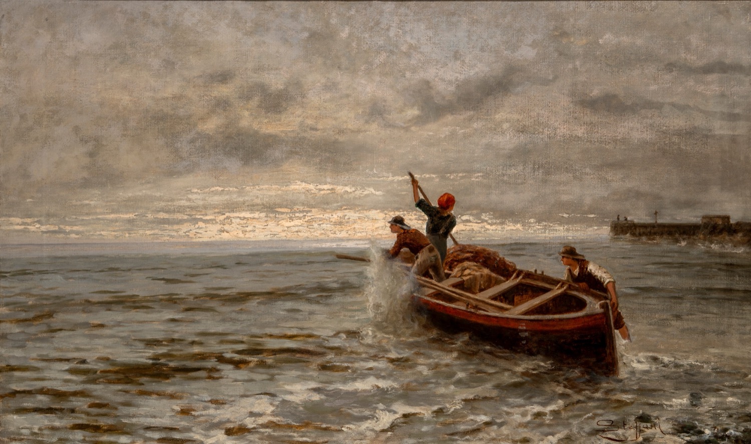 Luigi Steffani (San Giovanni Bianco 1827 - Milano 1898) - Marina e pescatori