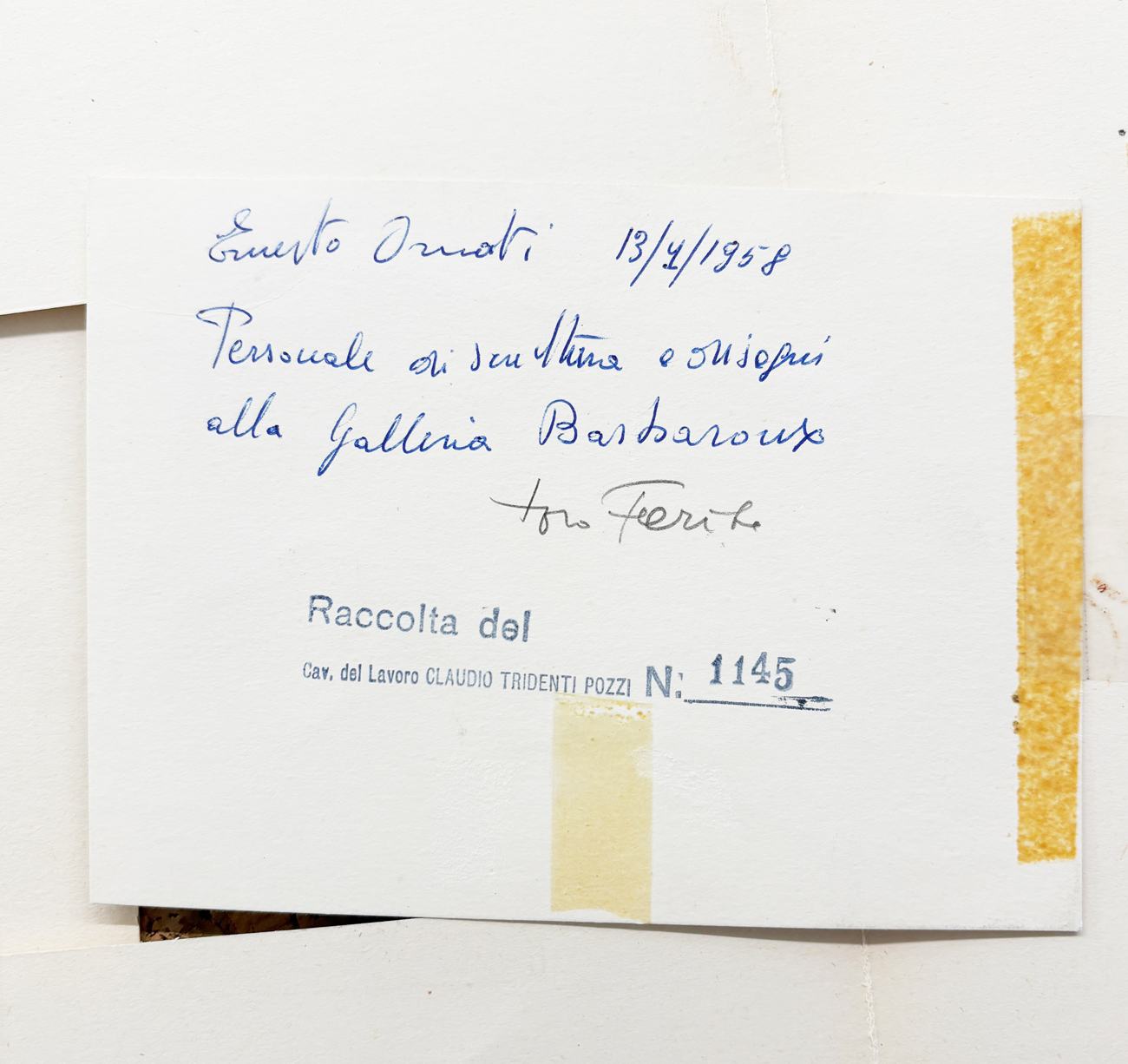 Timbro della Raccolta Claudio Tridenti Pozzi con numero di repertorio al retro