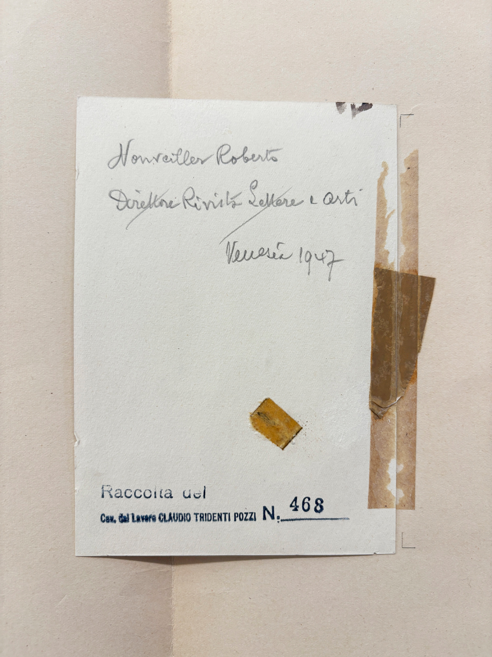 Timbro della Raccolta Claudio Tridenti Pozzi con numero di repertorio al retro