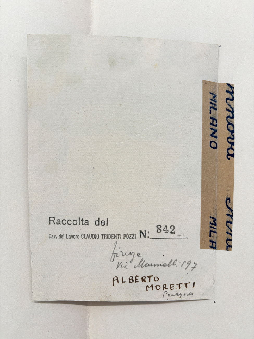 L'opera è parte della collezione di Piccolo Formato del Cavaliere del Lavoro Claudio Tridenti Pozzi, proprietario del negozio Pozzi Abbigliamento Maschile di Milano, una raccolta di opere formato cartolina iniziata nel 1935
