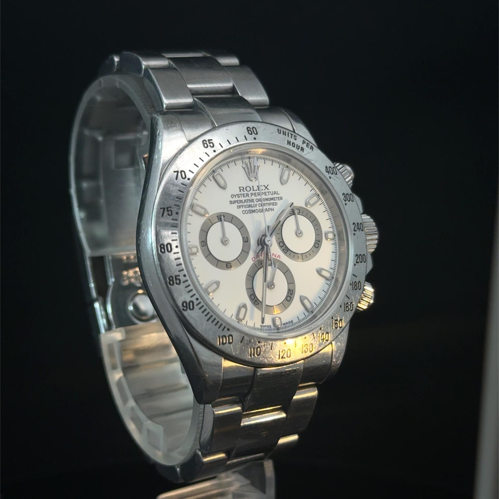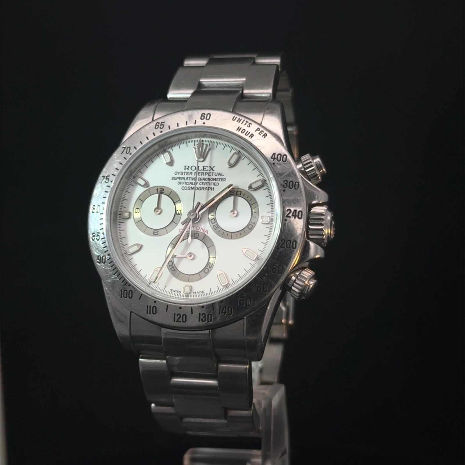 Marca Rolex Modello (Orologio) Daytona Numero di referenza 116520 Carica Automatico Materiale della cassa Acciaio Materiale cinturino Acciaio Anno di produzione 2003 documenti originali Rolex, no box Carica Automatico Cassa Materiale della cassa Acciaio Diametro 40 mm Impermeabile 10 ATM Materiale lunetta Acciaio Vetro Vetro zaffiro Cinturino Materiale cinturino Acciaio Colore cinturino Acciaio Chiusura Déployante Materiale chiusura Acciaio - COMMISSIONE D’ASTA 25%