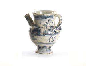 BROCCA Versatoio da farmacia in maiolica monocroma. Savona. Marca Folco. meta XVIII secolo H 19 cm Pharmacy pitcher XVIII century