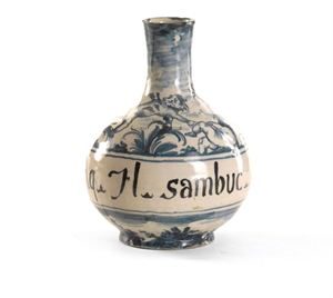 FIASCA Fiasca in ceramica di Savona bianca e blu, epoca fine XVII secolo H 22 cm Savona's Fiasca ceramic white and blue, vintage late seventeenth century