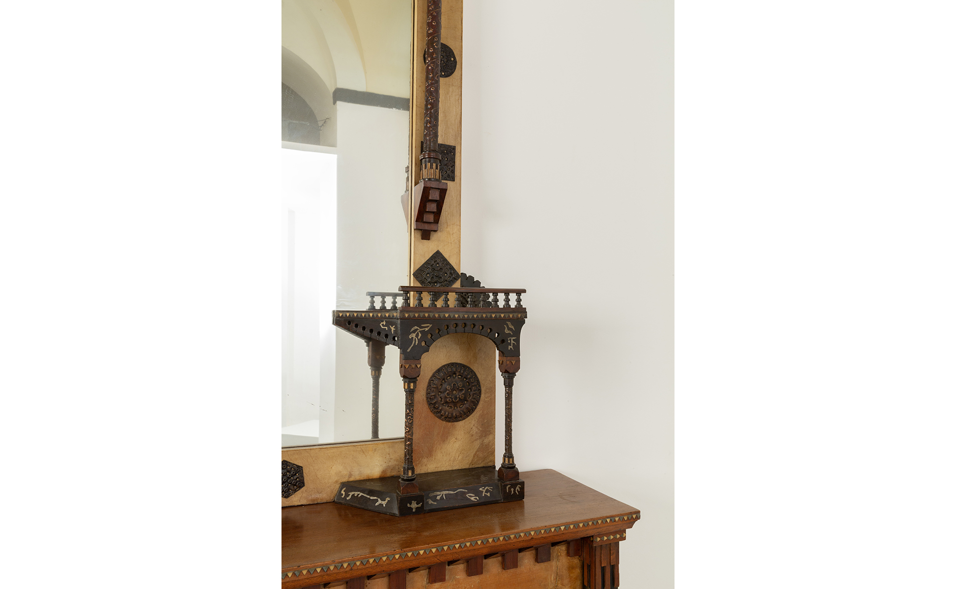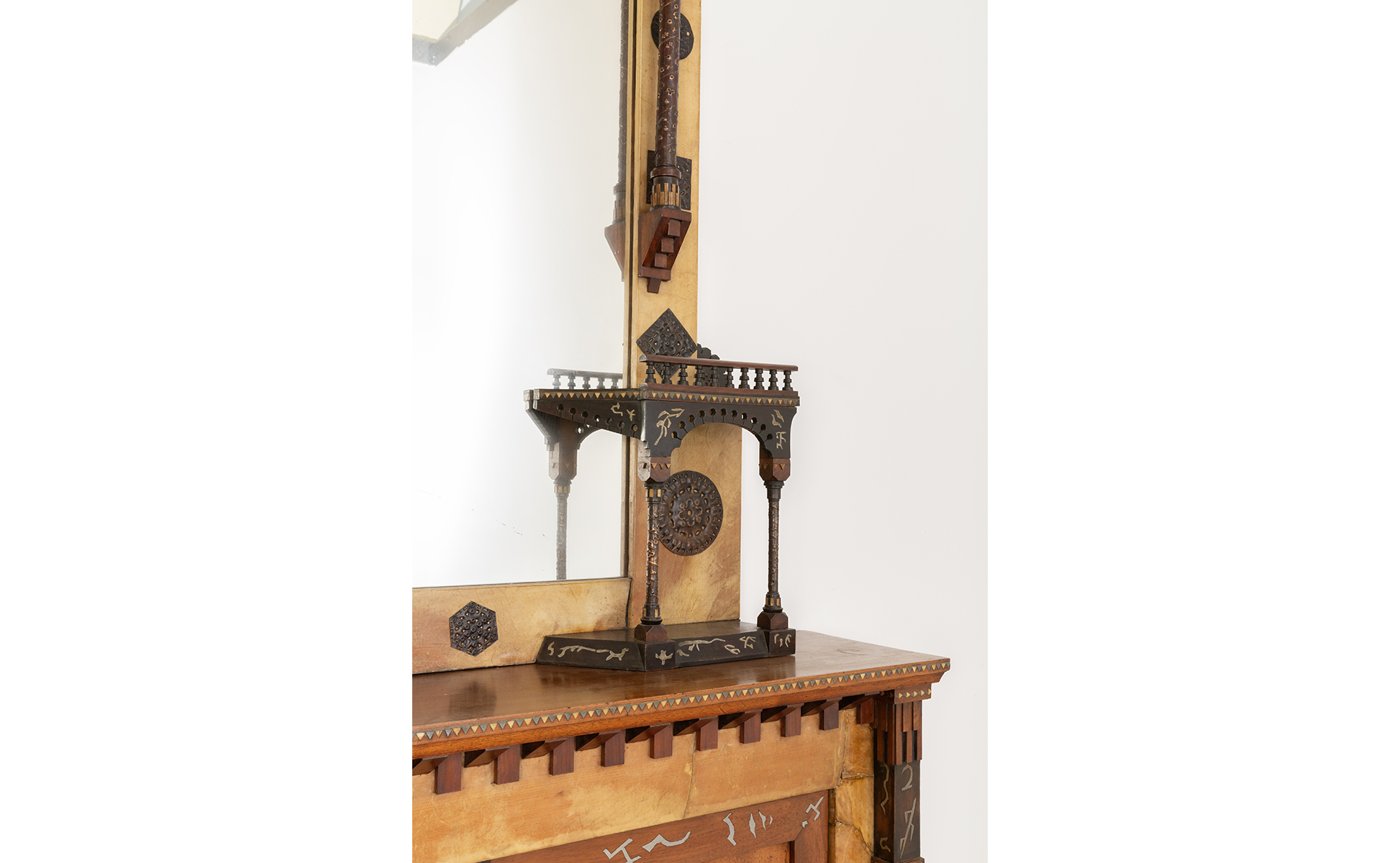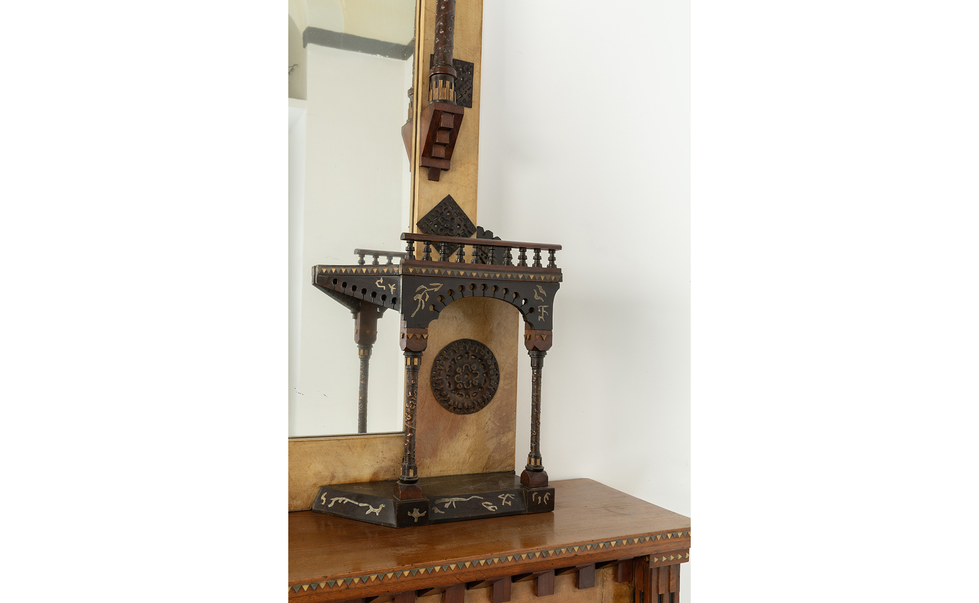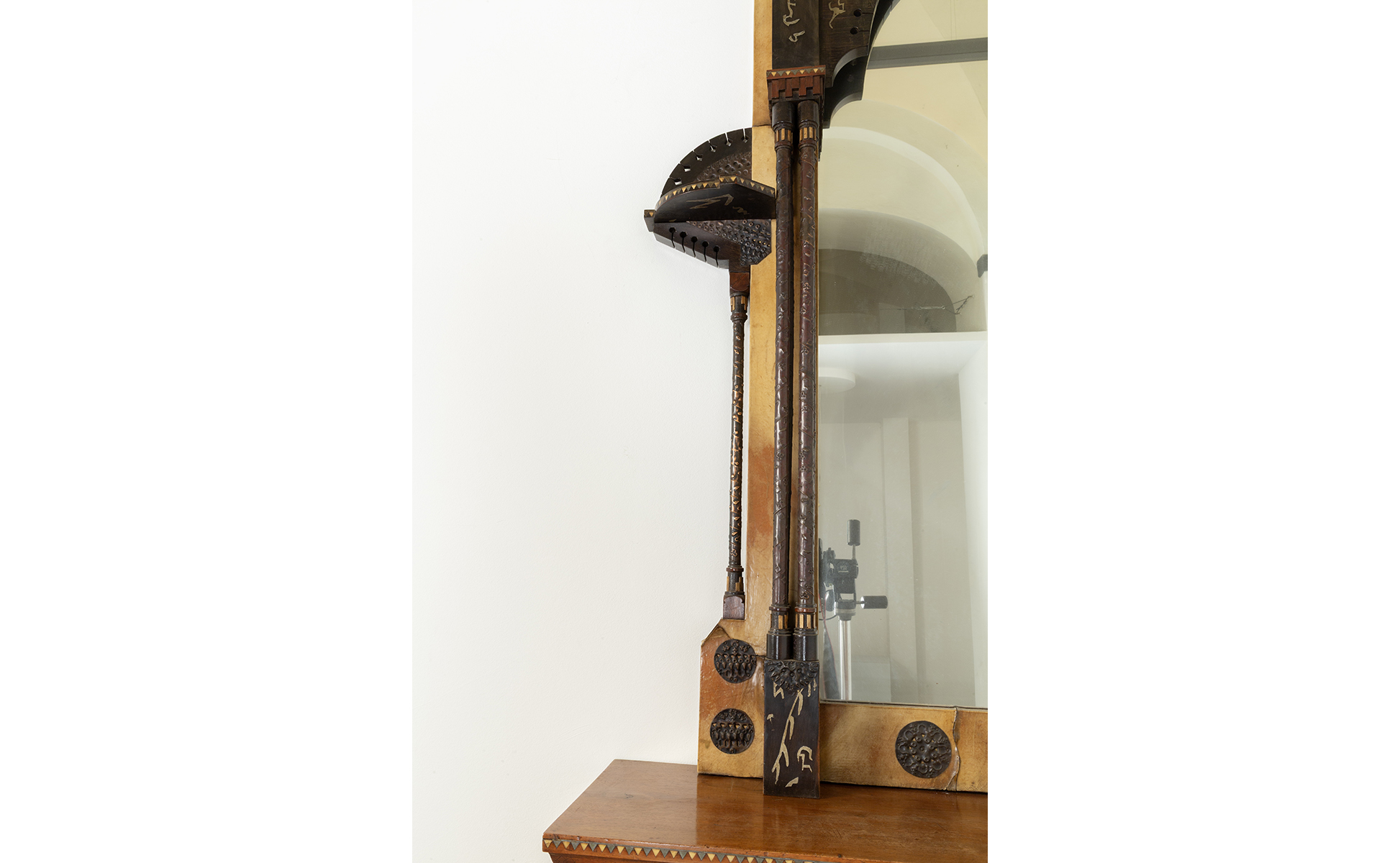 Varie essenze di legno con intarsi in peltro rame sbalzato