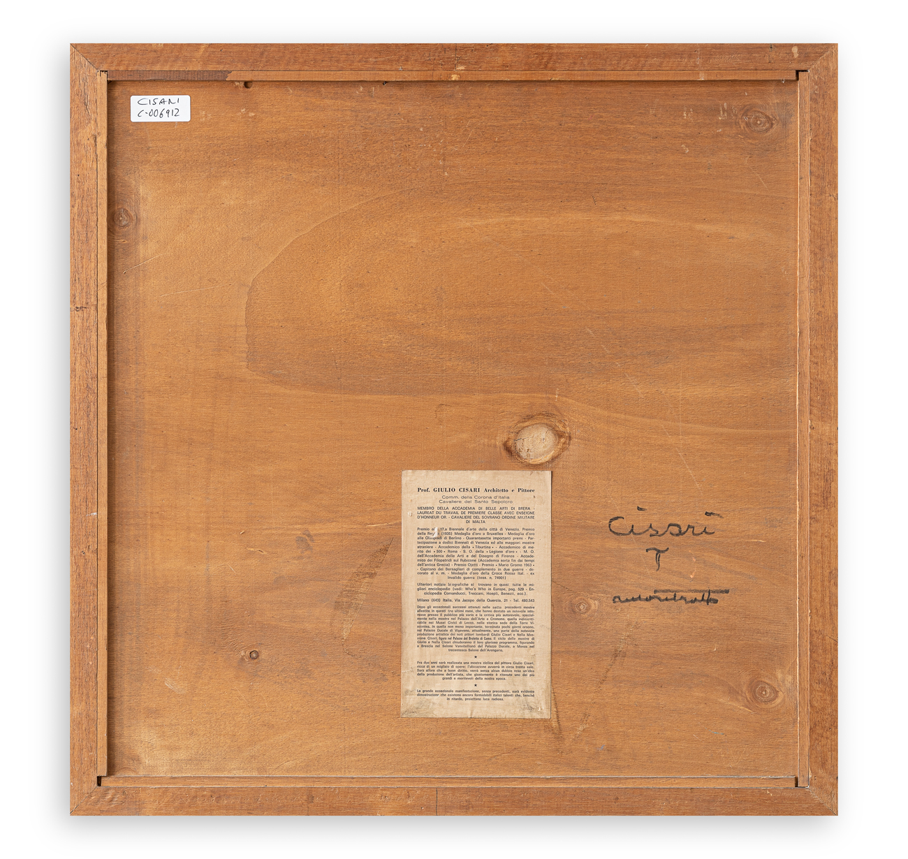 Cartiglio dell'Artista al retro