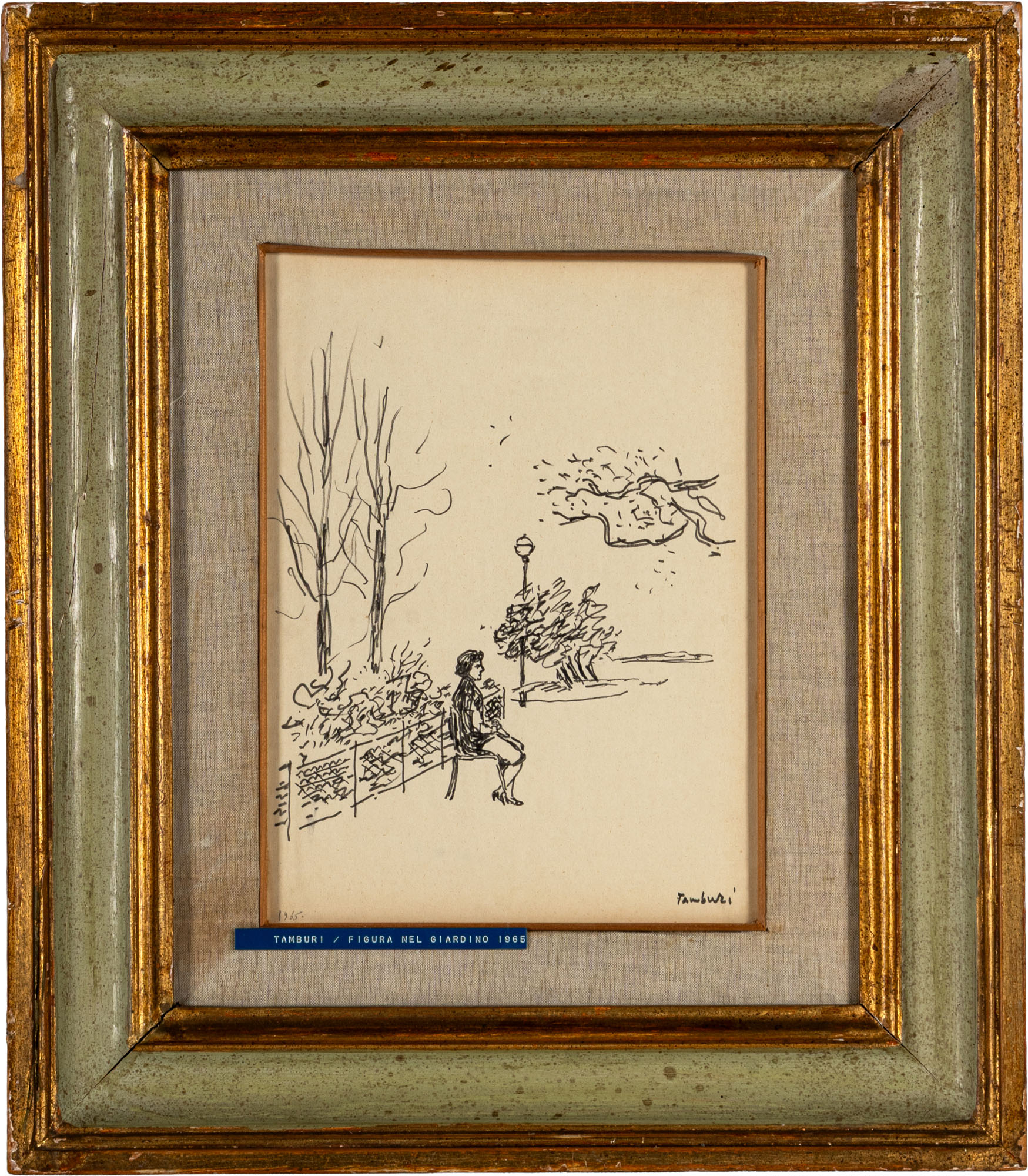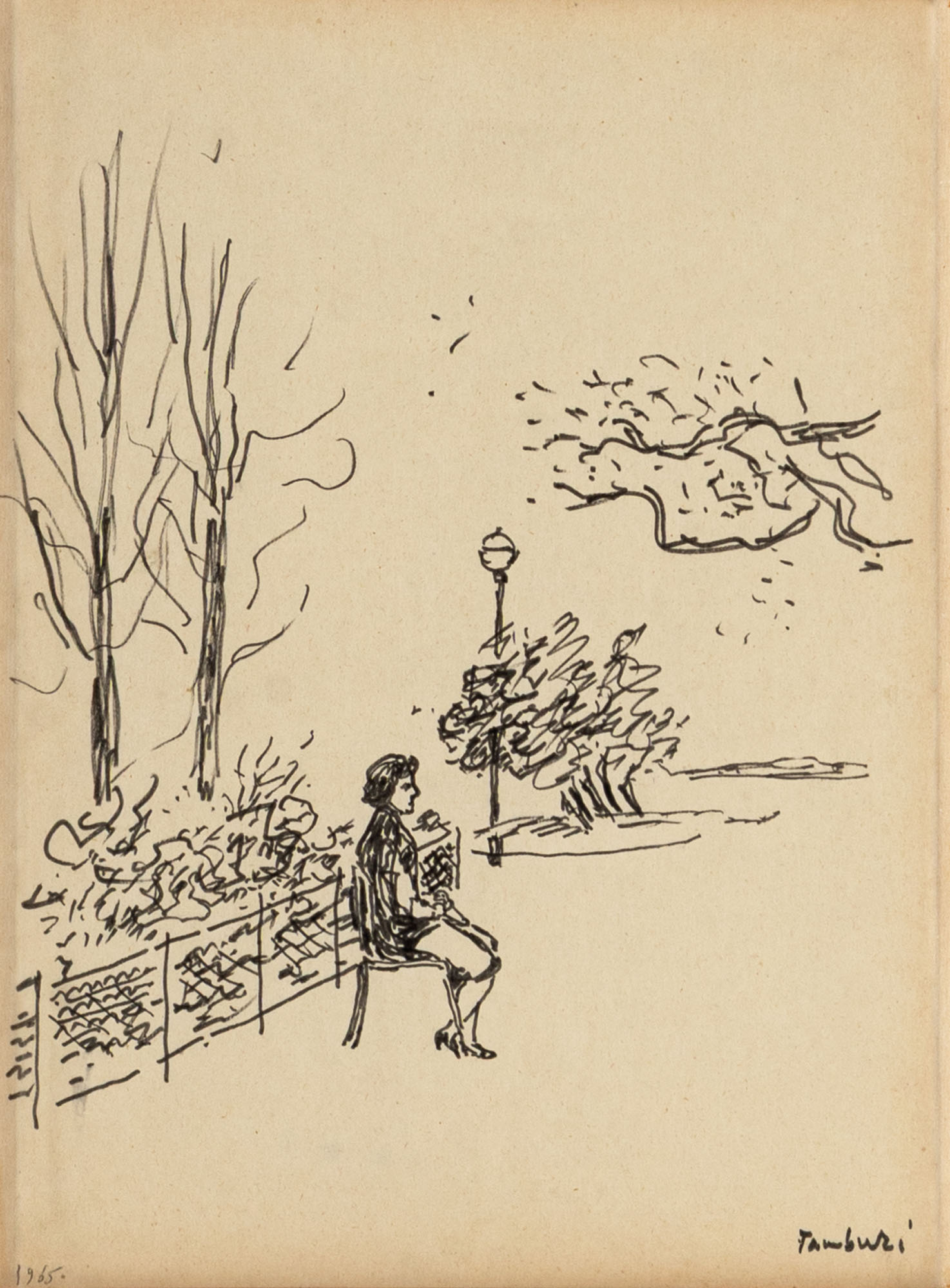 ORFEO TAMBURI(1910 - 1994)Figura nel giardino1965China su carta32 x 24 cmFirmata in basso a destra e datata in basso a sinistraPROVENIENZA:Collezione privata, Vercelli
