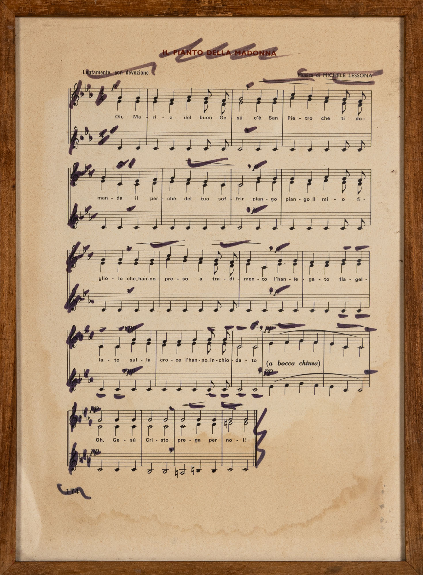 GIUSEPPE CHIARI(1926 - 2007)Senza titolo1973Pennarello su spartito musicale33 x 24 cmFirma e data al retroPROVENIENZA:Collezione privata, Milano