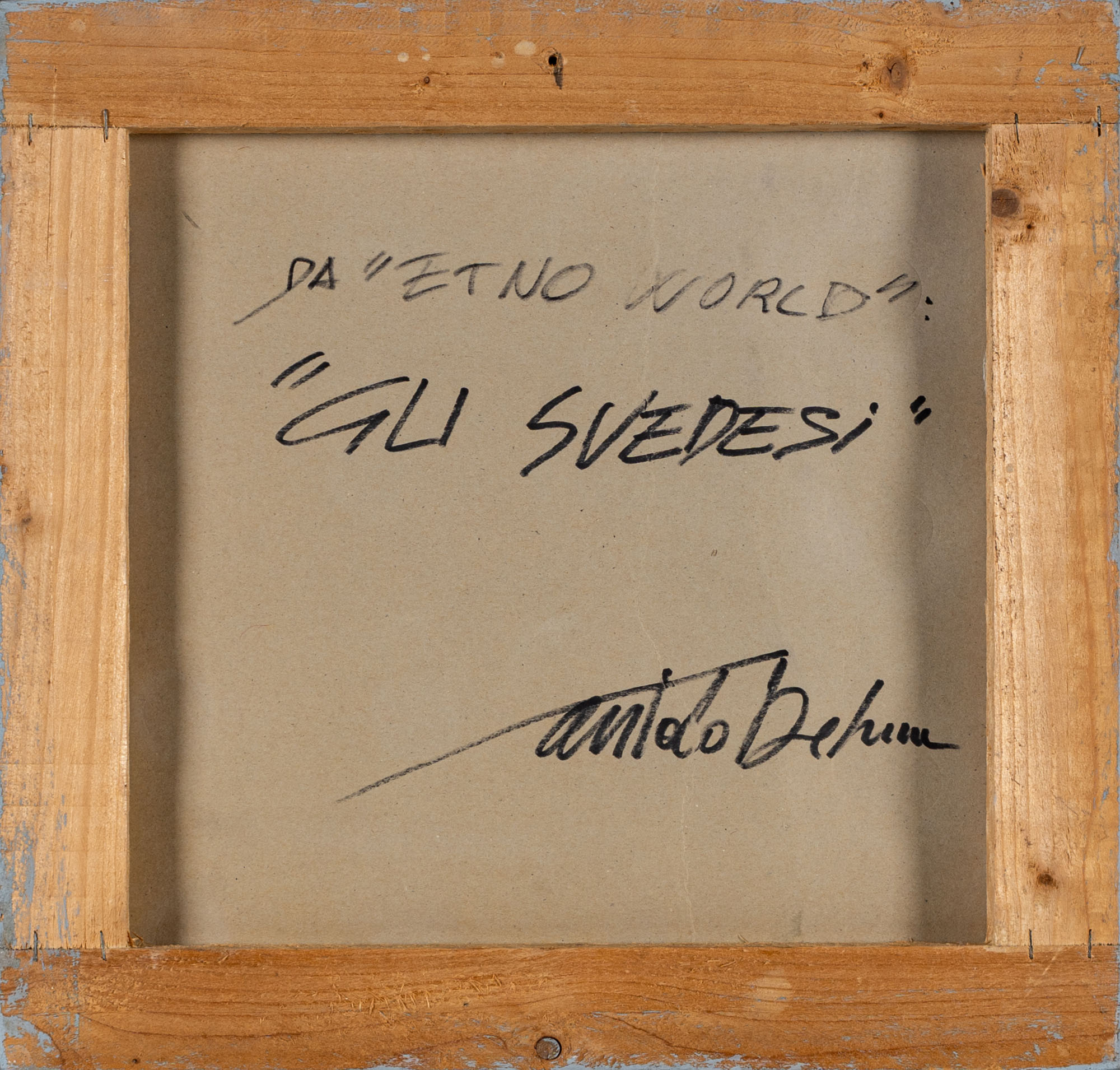 SANTOLO DE LUCA(1960)Gli svedesiOlio su cartone38,5 x 40 cmFirma e titolo al retroPROVENIENZA:Collezione privata, Milano