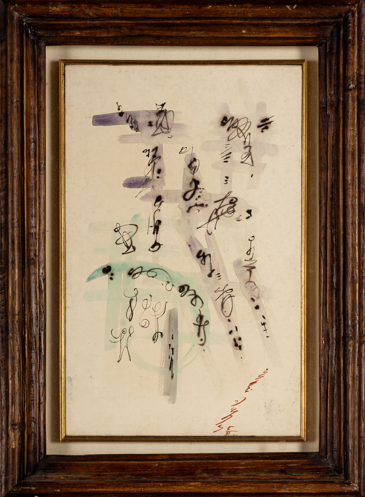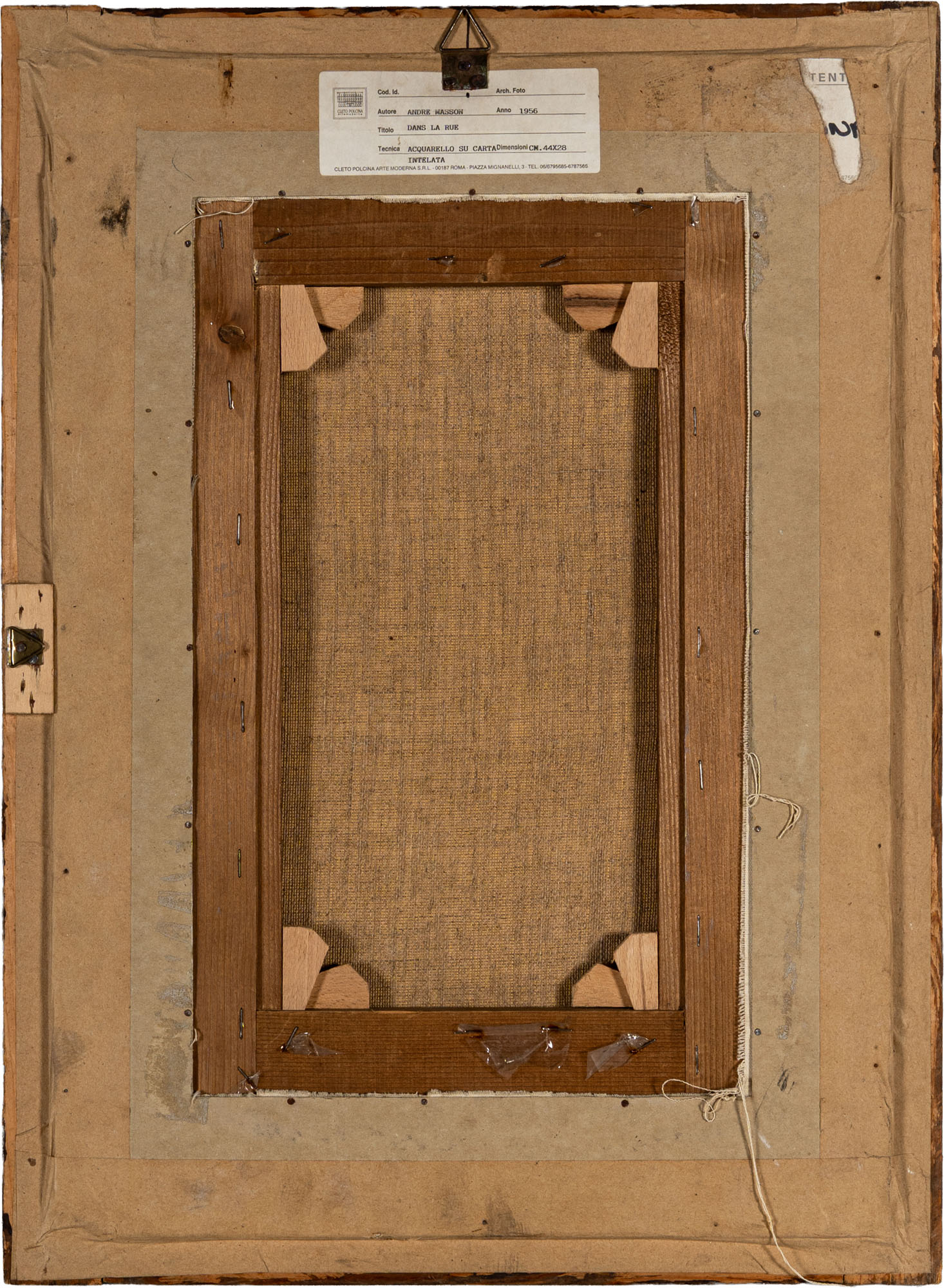 ANDRÉ MASSON(1896 - 1987)Dans la rue1956Acquerello su carta applicata su tela44 x 28 cmFirmata e datata in basso a destraOpera accompagnata da certificato di autenticità a cura del Comité André Masson, ParigiPROVENIENZA:Cleto Polcina Arte Moderna, Roma (etichetta al retro)Collezione privata, Milano