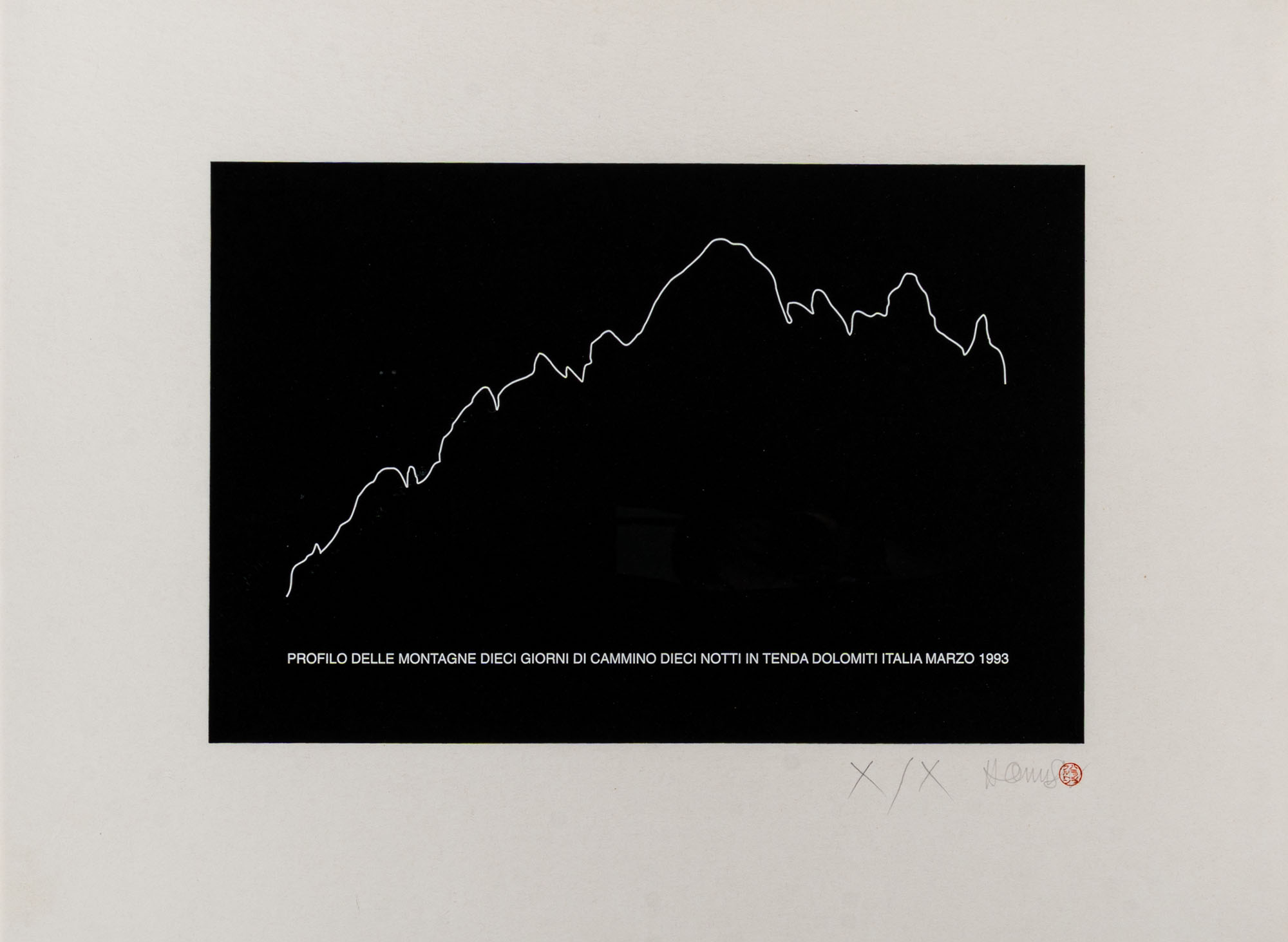 HAMISH FULTON(1946)Profilo delle montagne1993Serigrafia su carta Hahnemühle, es. X/X su una tiratura complessiva di 50 esemplari in numeri arabi e 10 esemplari in numeri romani66,5 x 89 cmFirmata, numerata e timbrata in basso a destraPROVENIENZA:Collezione privata, Milano