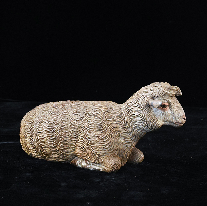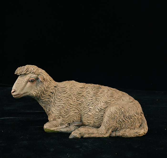 Pecora accosciata in terracotta policroma h cm 7 l cm 14 Napoli XVIII - XIX secolo