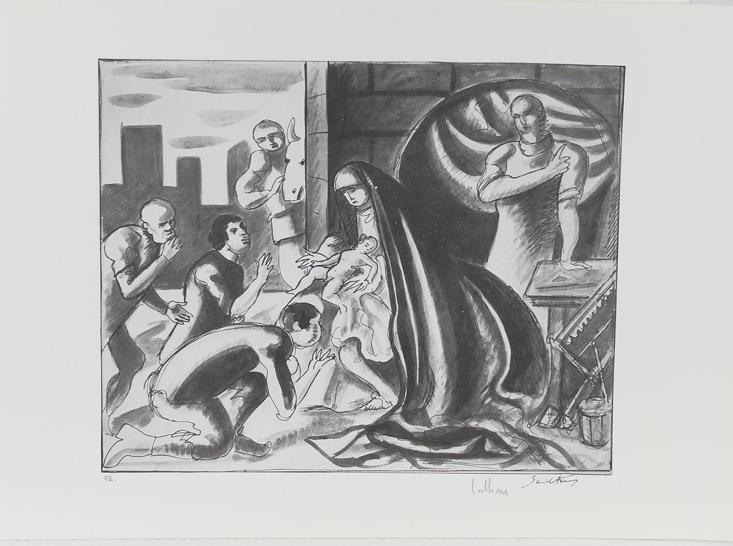 Sciltian Gregorio Natività litografia su carta Fabriano, cm. 50x70, es. P.A....