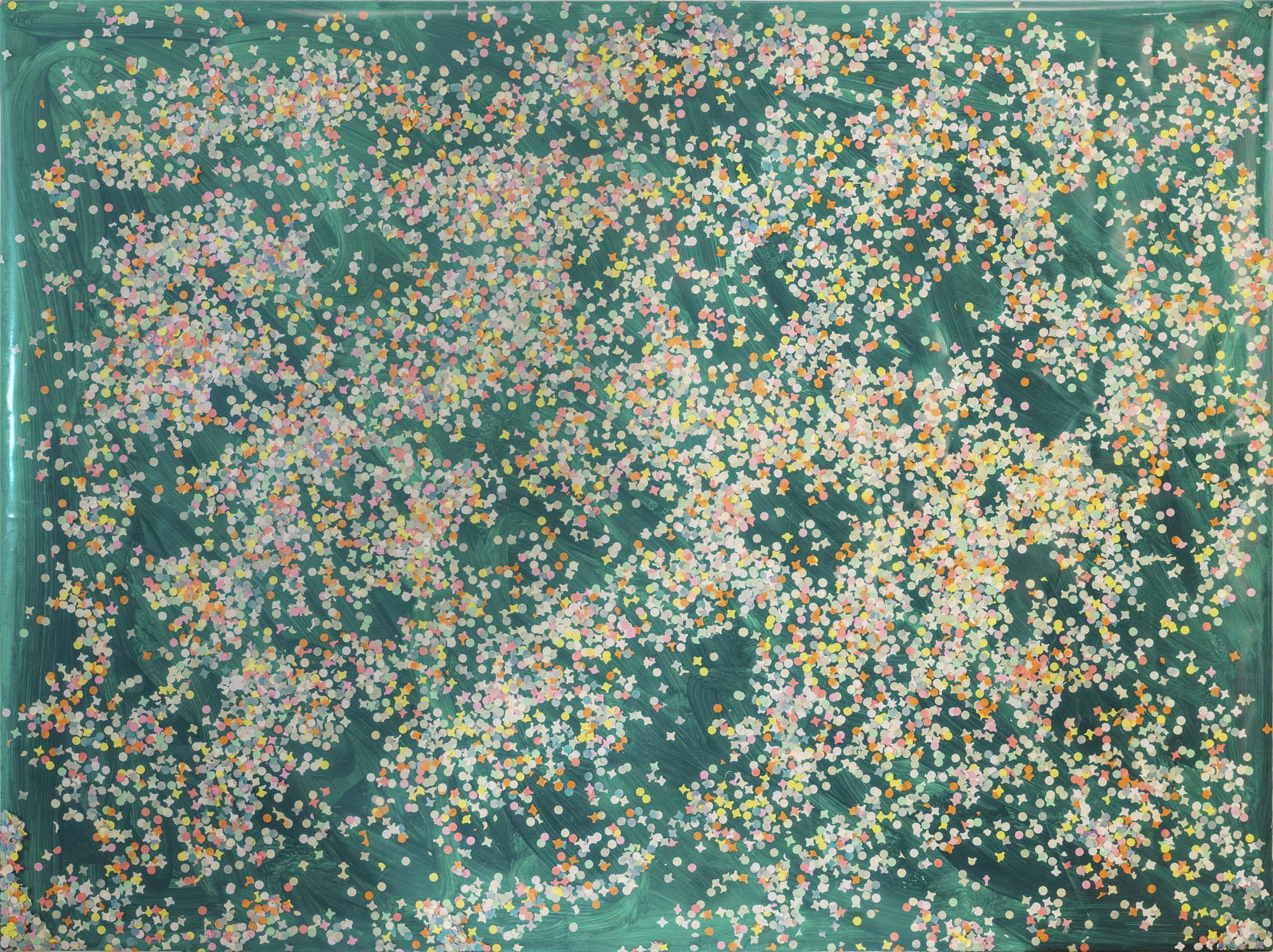acrilici, coriandoli e plastica su tela cm. 90x120