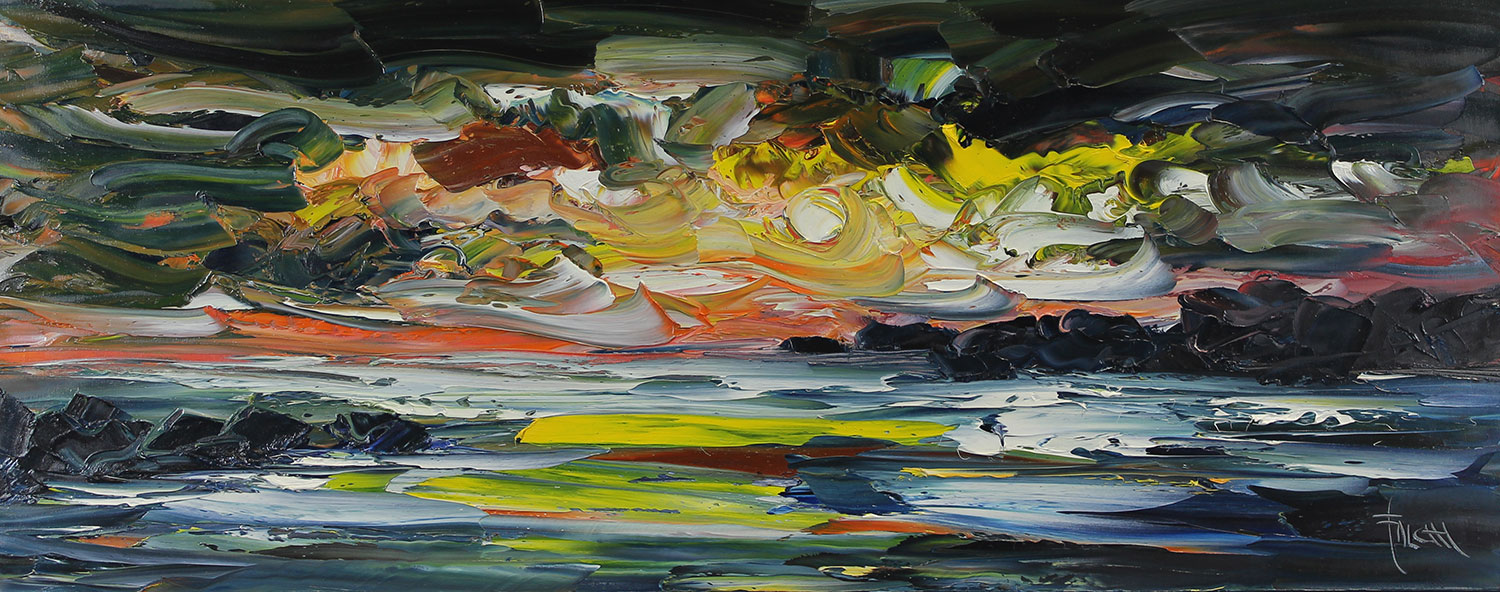 Falchi Mario Tramonto, 2014 olio su tela, cm. 40x100 firmato in basso a destra, firmato, intitolato e datato al retro del telaio, certificato di autenticità dell'artista su fotografia