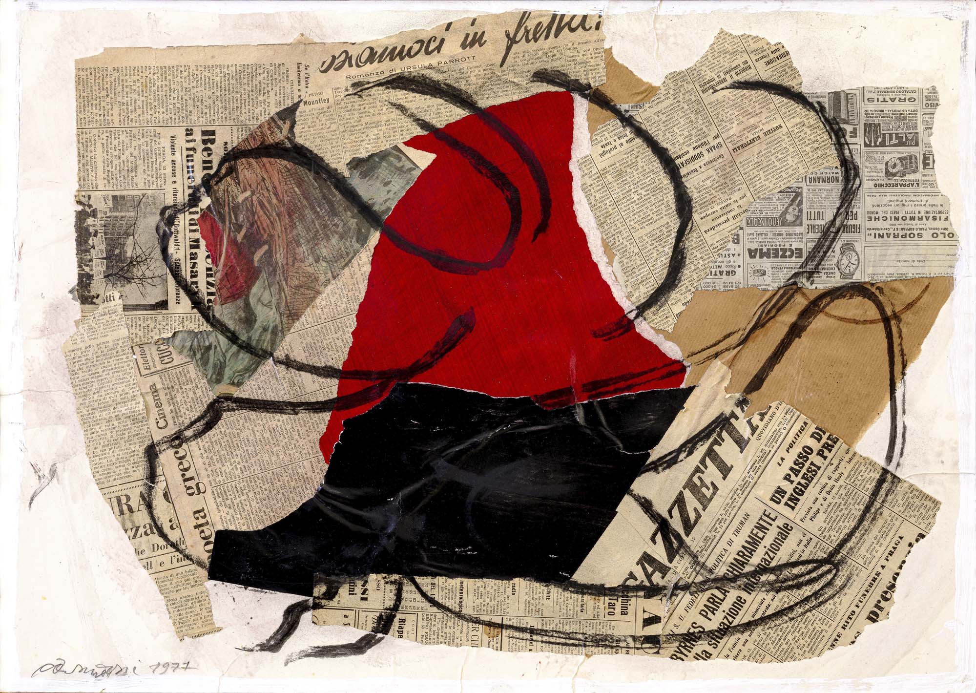 tecnica mista e collage su carta riportata su tavola cm. 50x70