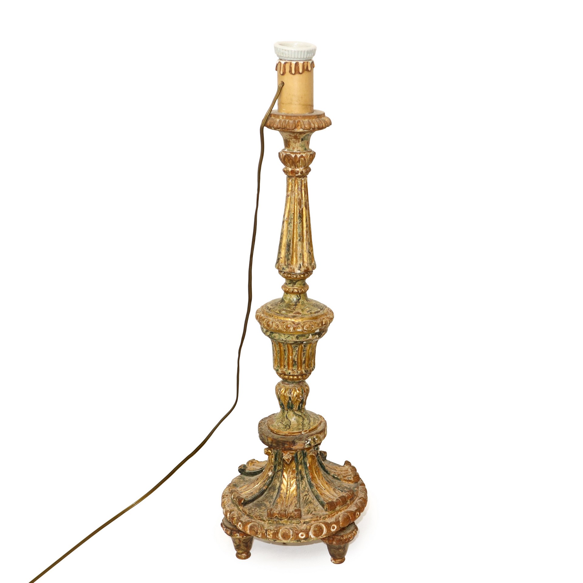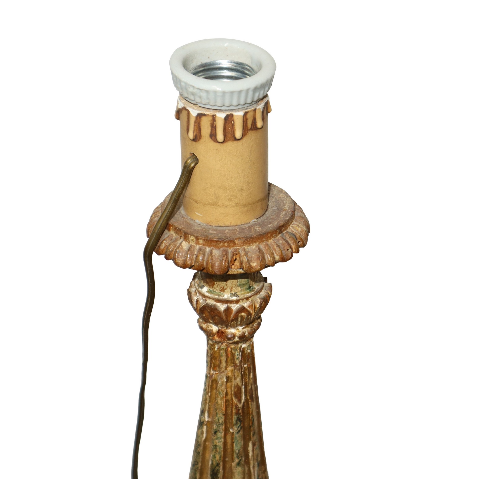 Coppia di candelieri in legno intagliato e scolpito, 18° secolo h cm 56,5 Segni di tarlo trattato
