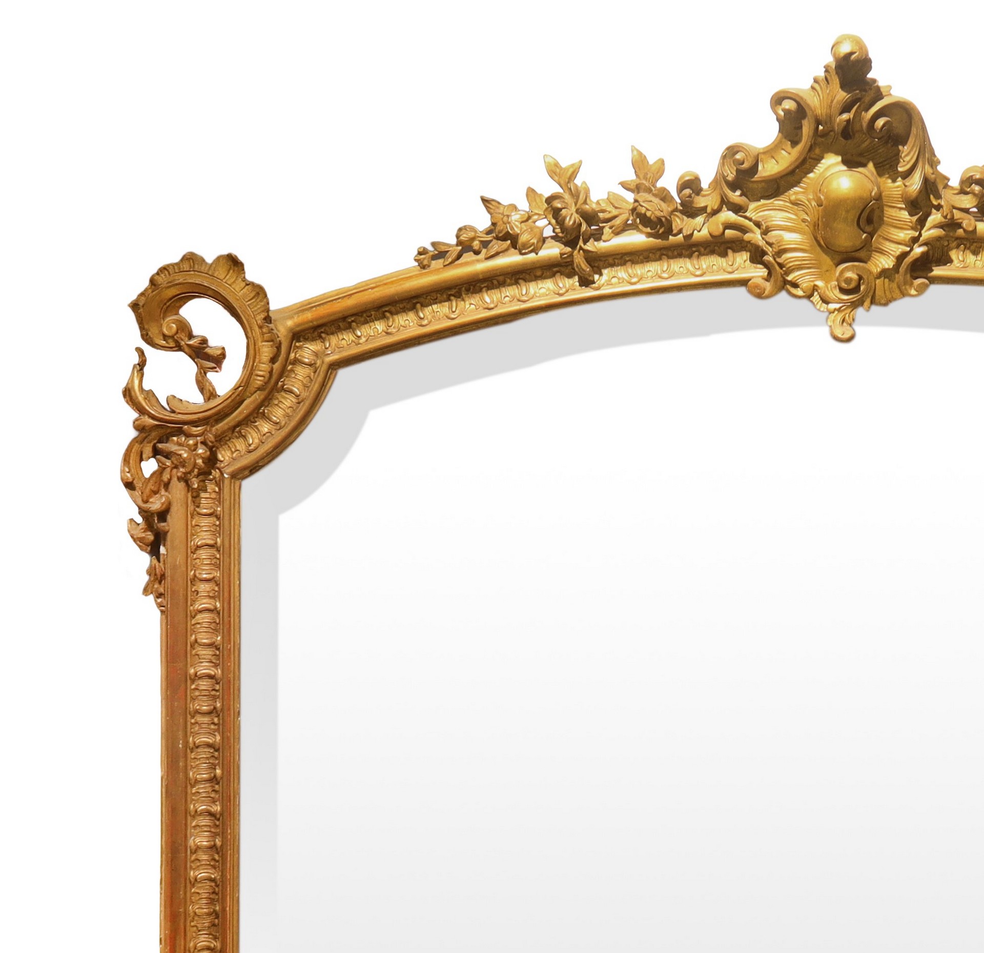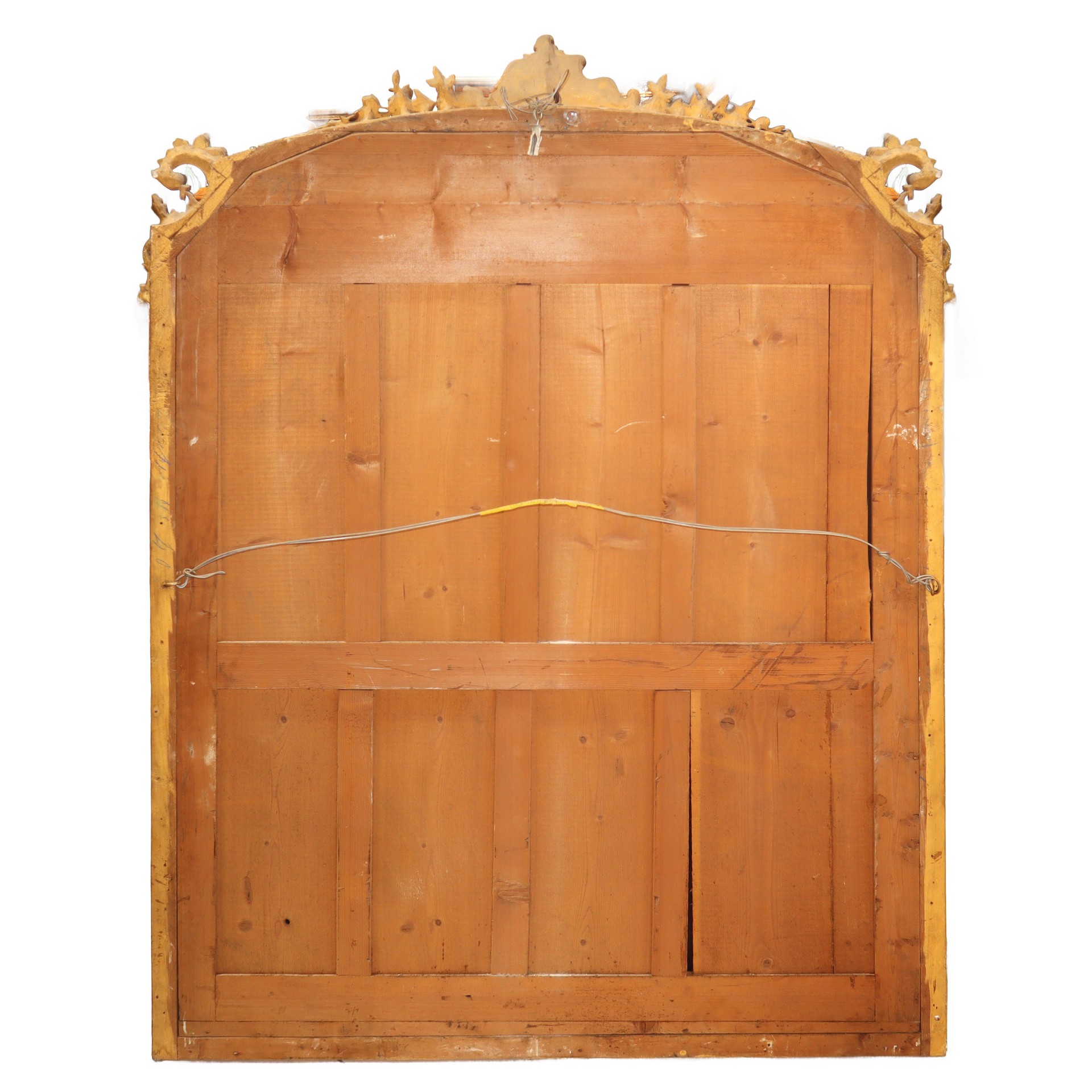 Grande specchio con cornice in legno dorato con cimasa centrale intagliata e scolpita , 19° secolo