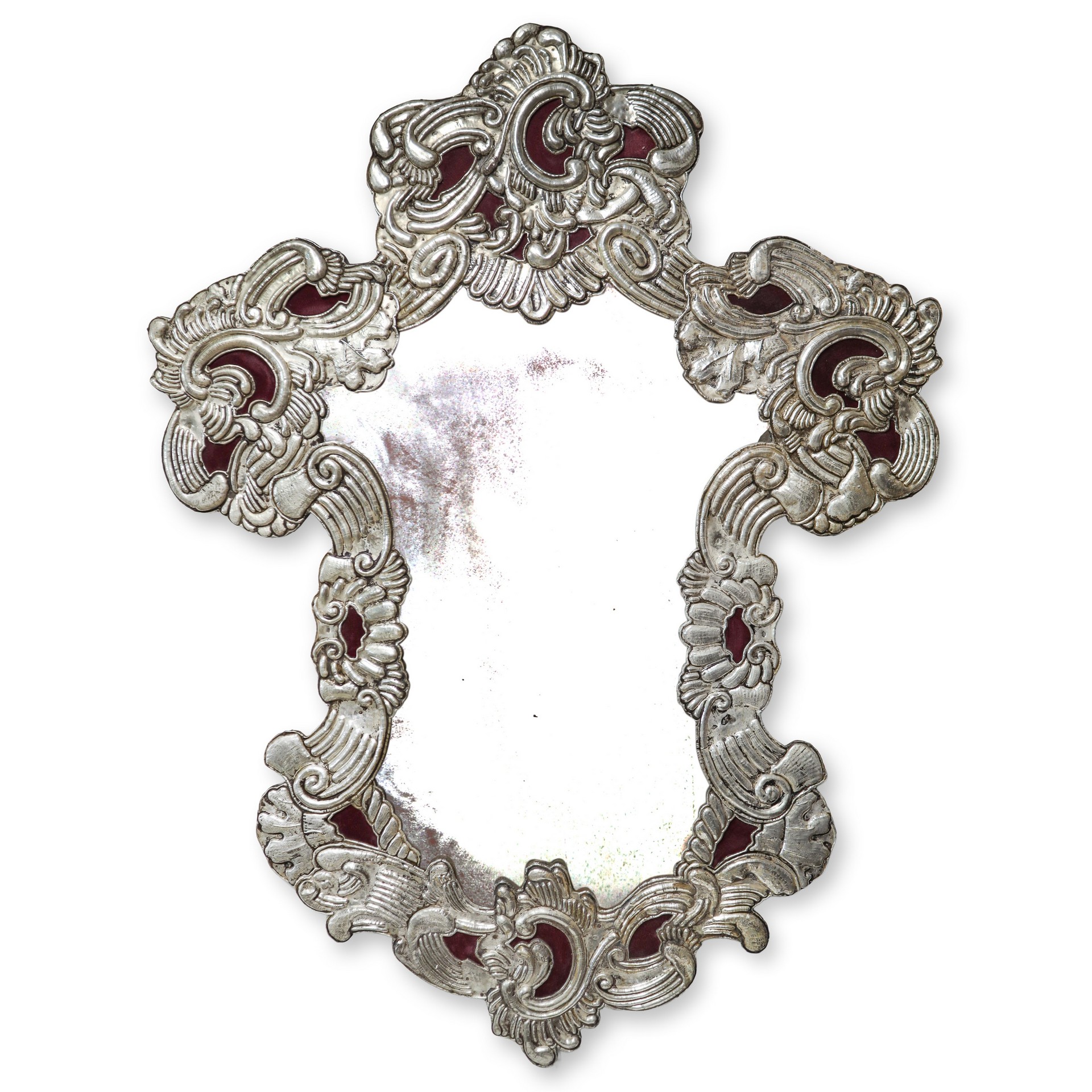 Lot 132 | Grande specchiera da muro con struttura in legno rivestita con lamina in argento sbalzato, 20° secolo